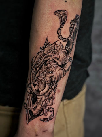 Specializing in blackwork, surrealism, and illustrative tattoos, he creates bold designs that blend imagination with detail. His work transforms striking concepts into unique, timeless pieces of art.